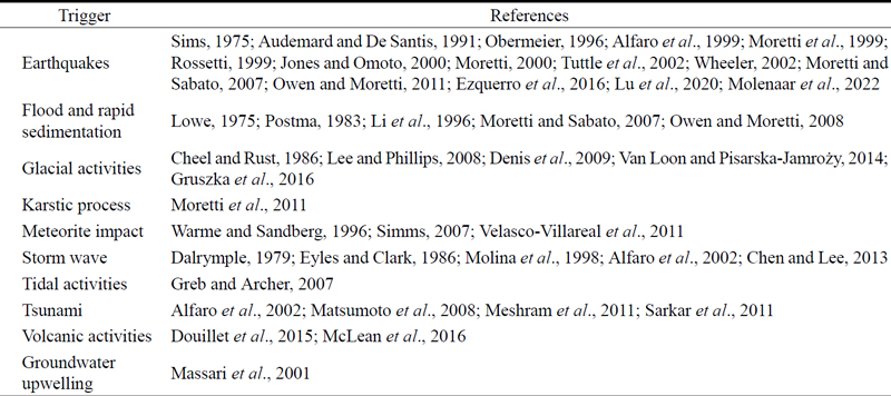 List of representative triggers responsible for the formation of soft sediment deformation structures.