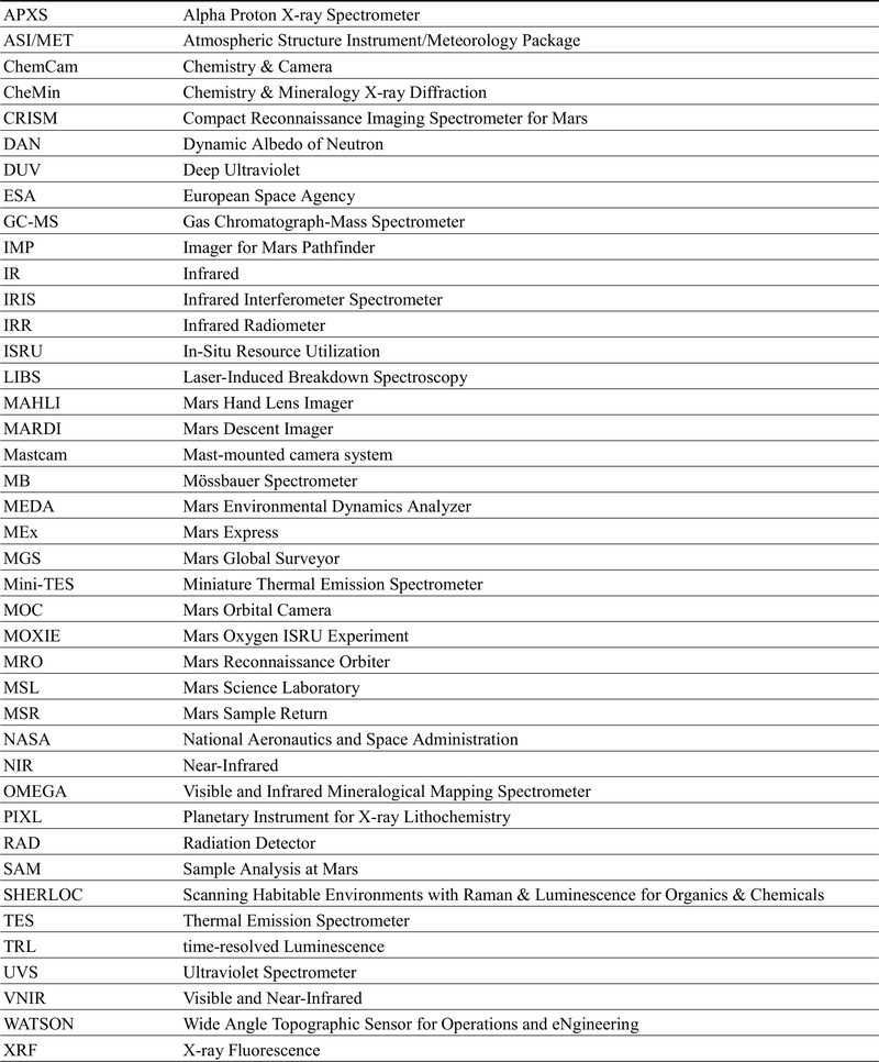 • Chevrier, V. and Mathé, P.E., 2006, Mineralogy and evolution of the surface of Mars: A review. Planetary and Space Science, 55, 289-314. [https://doi.org/10.1016/j.pss.2006.05.039]