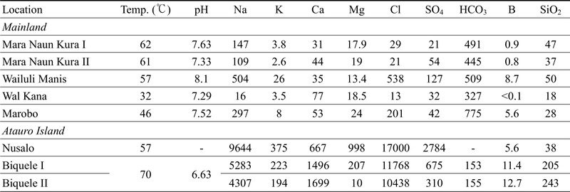 Summary of major hot springs in Timor-Leste and their characteristics (Lawless et al., 2005; Concentrations: mg/L).