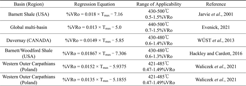 Evenick, J.C., 2021, Examining the relationship between Tmax and vitrinite reflectance: An empirical comparison between thermal maturity indicators. Journal of Natural Gas Science and Engineering, 91, 103946.